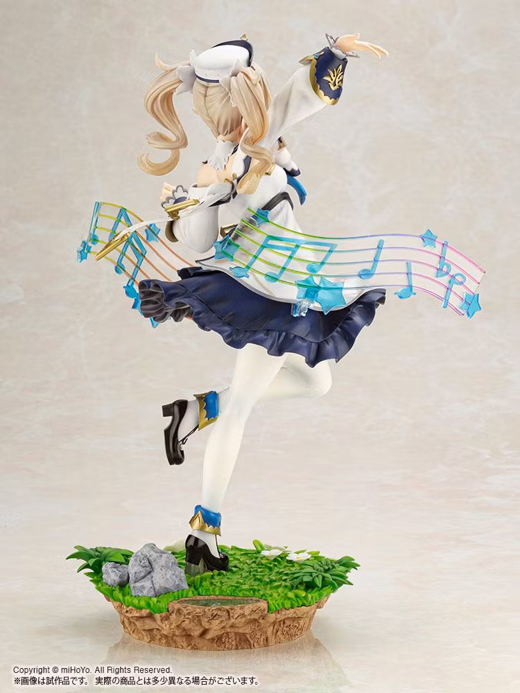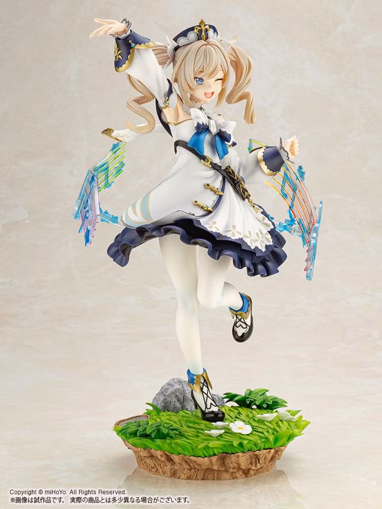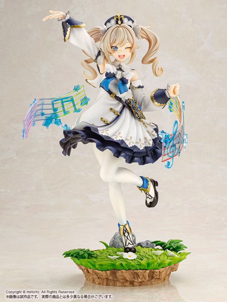 Barbara, the esteemed Deaconess of the Church of Favonius and beloved idol of Mondstadt, is now available as a stunning 1/7 scale figure. Every detail of her captivating charm has been meticulously crafted, from her endearing expression to the gentle sway of her skirt. With removable effect parts, you have the flexibility to showcase her with or without her signature singing effects.