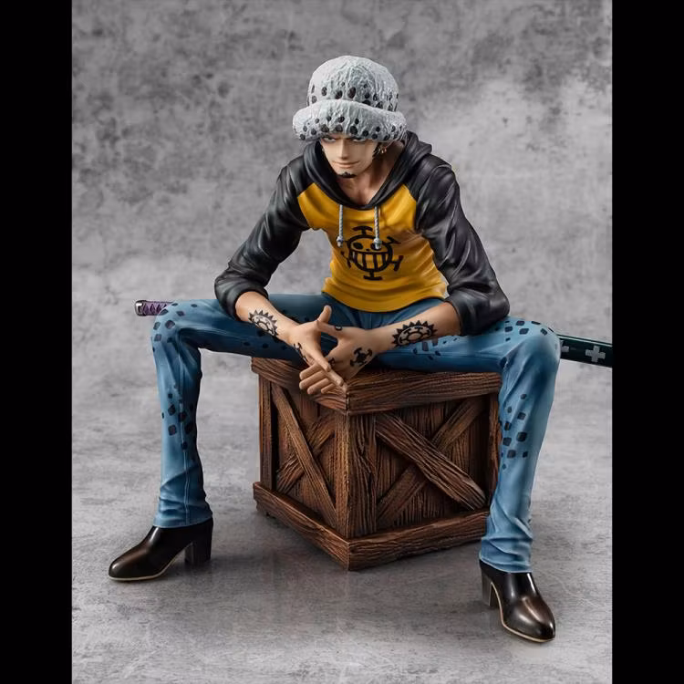 Introducing the latest addition to the Portrait of Pirates figure series from the renowned One Piece anime: Trafalgar Law! This exquisitely detailed figure depicts Law seated upon a wooden crate, his fingers interlocked in a thoughtful pose. Capture the essence of this enigmatic character with this meticulously crafted figure, a must-have for any fan of One Piece.