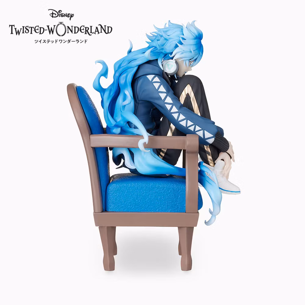 Enter the enigmatic world of Twisted Wonderland with Sega’s stunning Premium Grace Situation figure of Idia Shroud. Seated in a plush blue armchair, Idia is portrayed in a relaxed and introspective pose, perfectly capturing his mysterious allure. His signature blue hair flows with flame-like tendrils, adding an ethereal touch to the figure’s design.