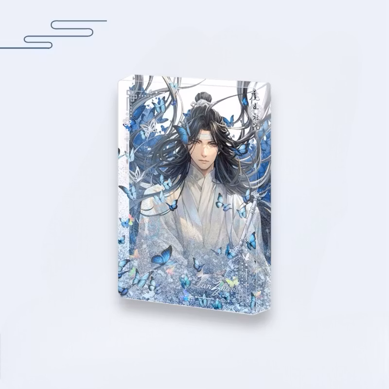 Production: Offset Printing, CNC Cutting , Partial screen printing with mirrored silver , Holographic butterfly sequins , Iridescent (or multicolored) fragments , Lake blue fine sand