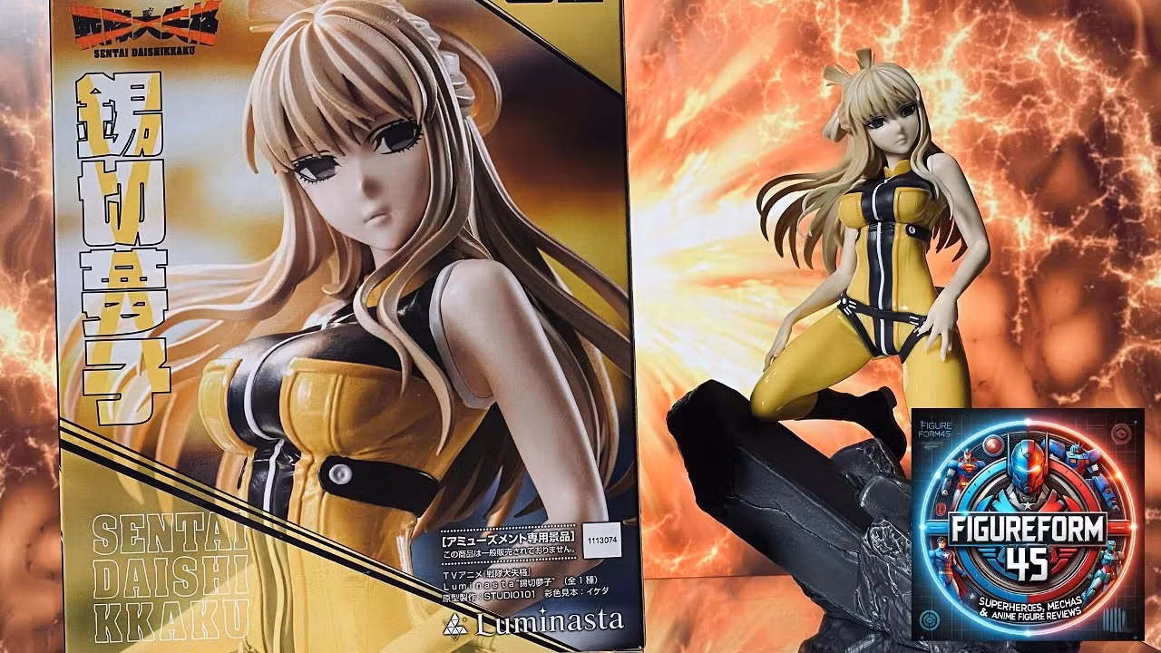 It’s a 16 cm tall PVC/ABS figure from SEGA’s “Luminasta” line, based on Go! Go! Loser Ranger! (also known as Sentai Daishikkaku). The figure shows Yumeko Suzukiri in a dynamic pose — outfit faithful to the series (tight yellow‑and‑black suit), with a scenic base (a rocky surface) that enhances her stance. It’s a non‑articulated collectible statue — so more for display/collection than for posing or play.